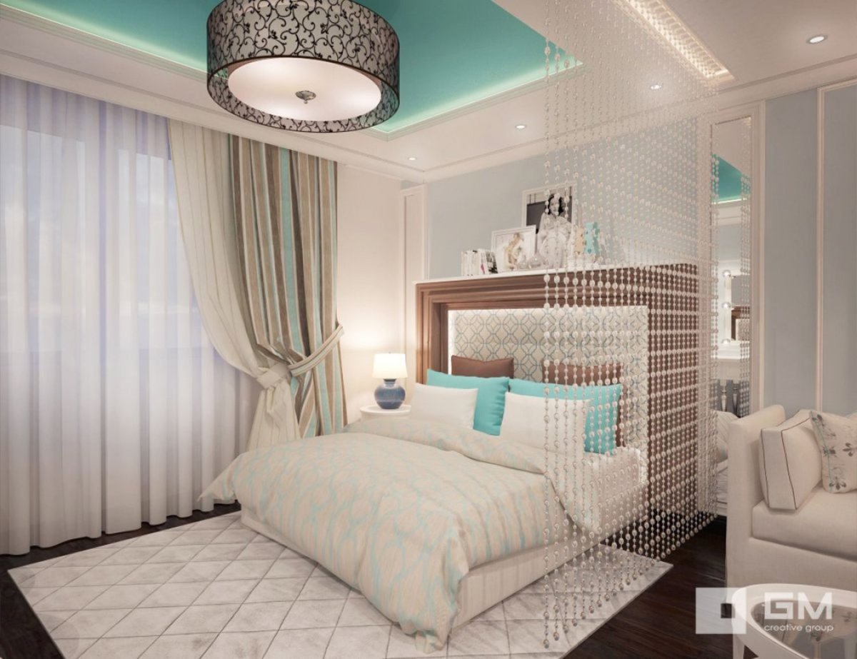 64. Спальня с бирюзовыми акцентами