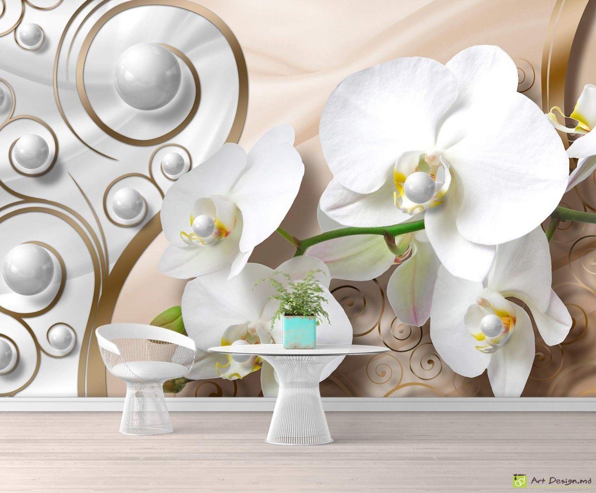 10. Орхидея на бежевом фоне в интерьере фотообои