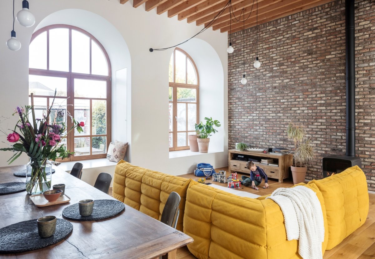 Кирпич и штукатурка в интерьере