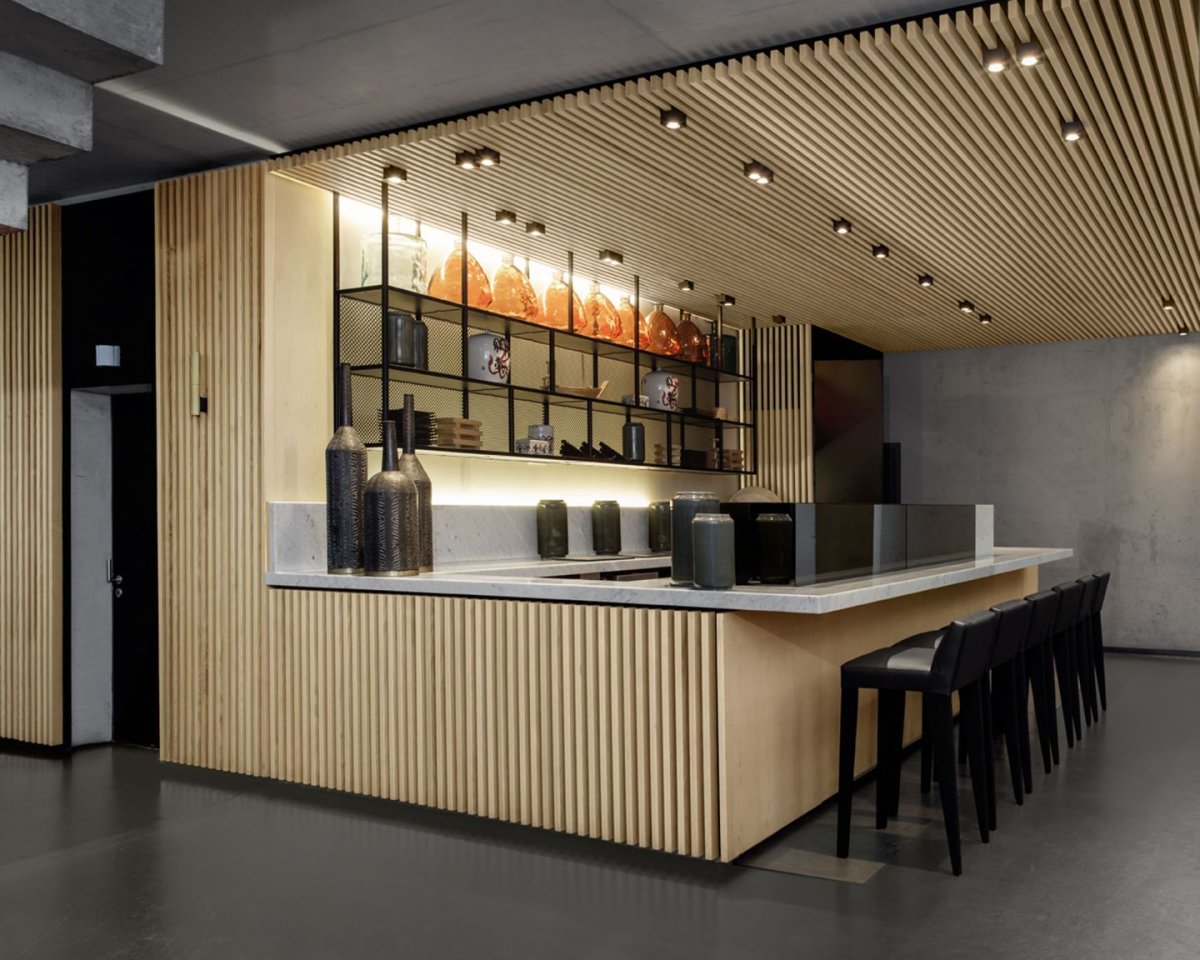 Кафе интерьер из деревянных реек