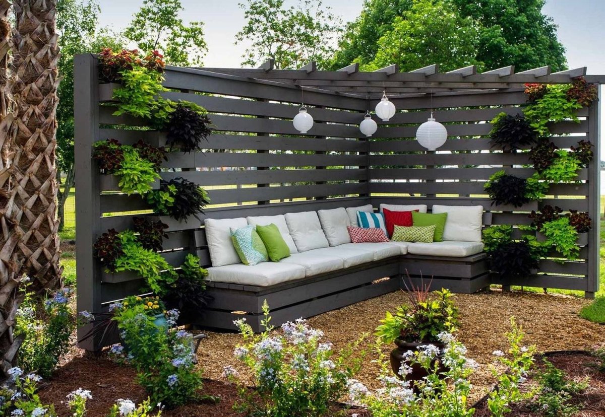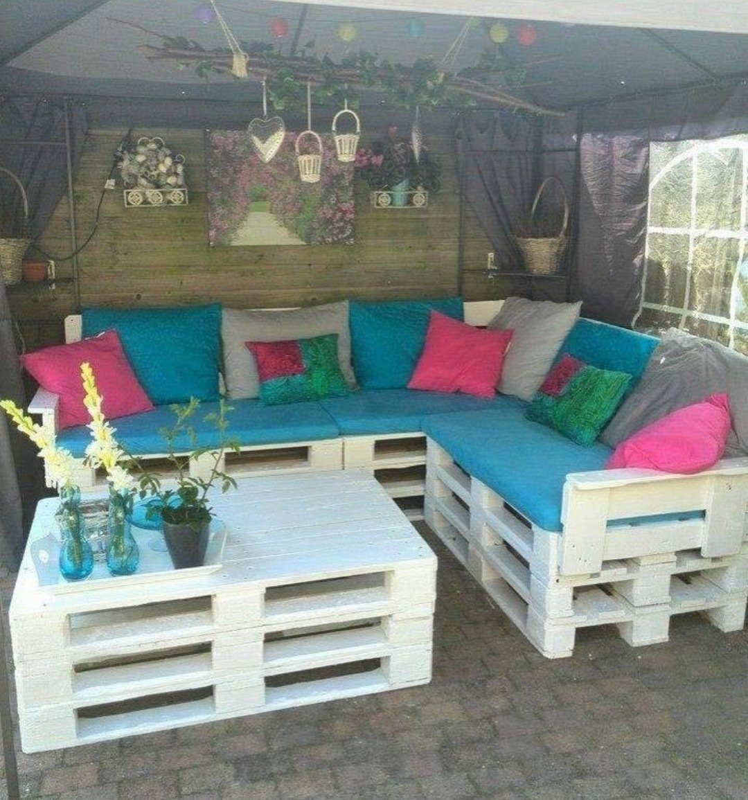 Беседка из поддонов с цветником