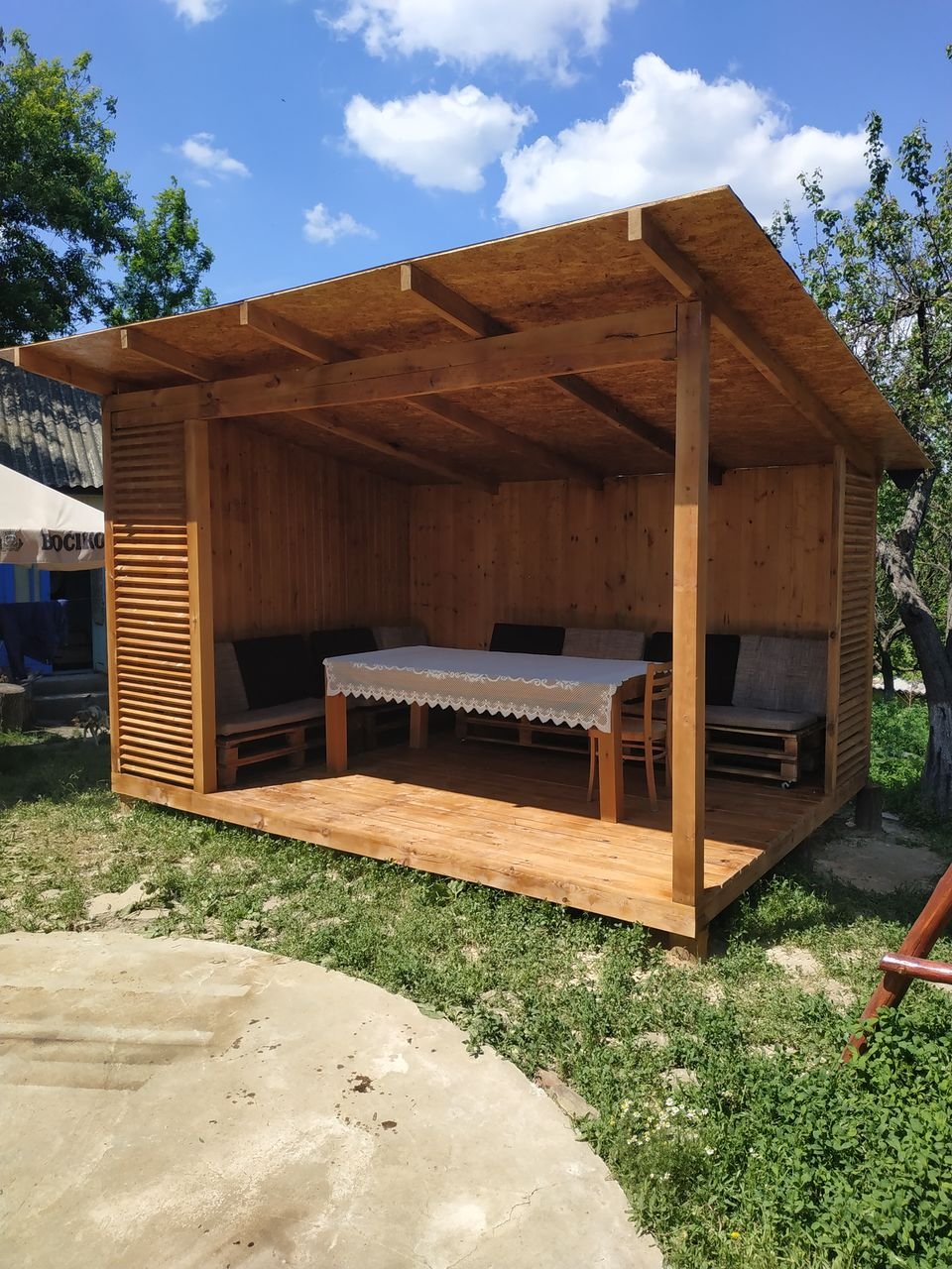 Дачная беседка из поддонов
